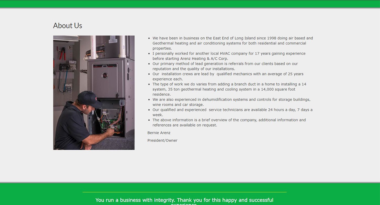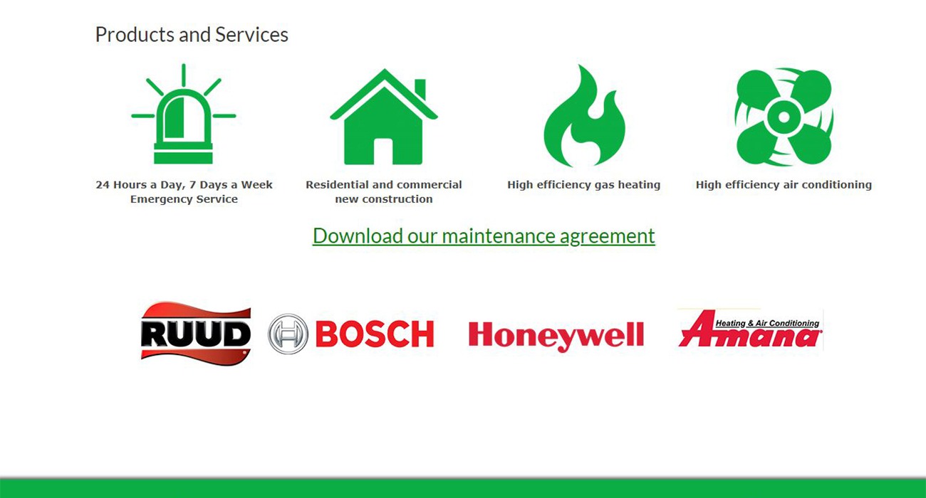 Arenz Heating & Plumbing wanted a site that would be one, long scrolling page. The main page has multiple sections showing what they offer, testimonials, customer resources and contact information. The navigation brings the user to the corresponding section and an arrow appears at the bottom of the page to take the user back to the top. All graphics used on the site were original and created by me using illustrator and photoshop.